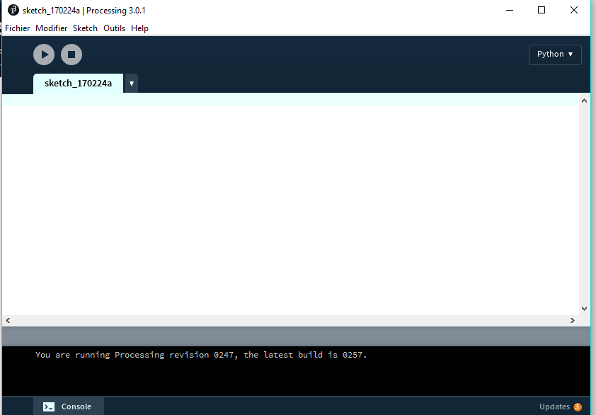 Vous devez obtenir la fenêtre de développement de Processing suivante :
